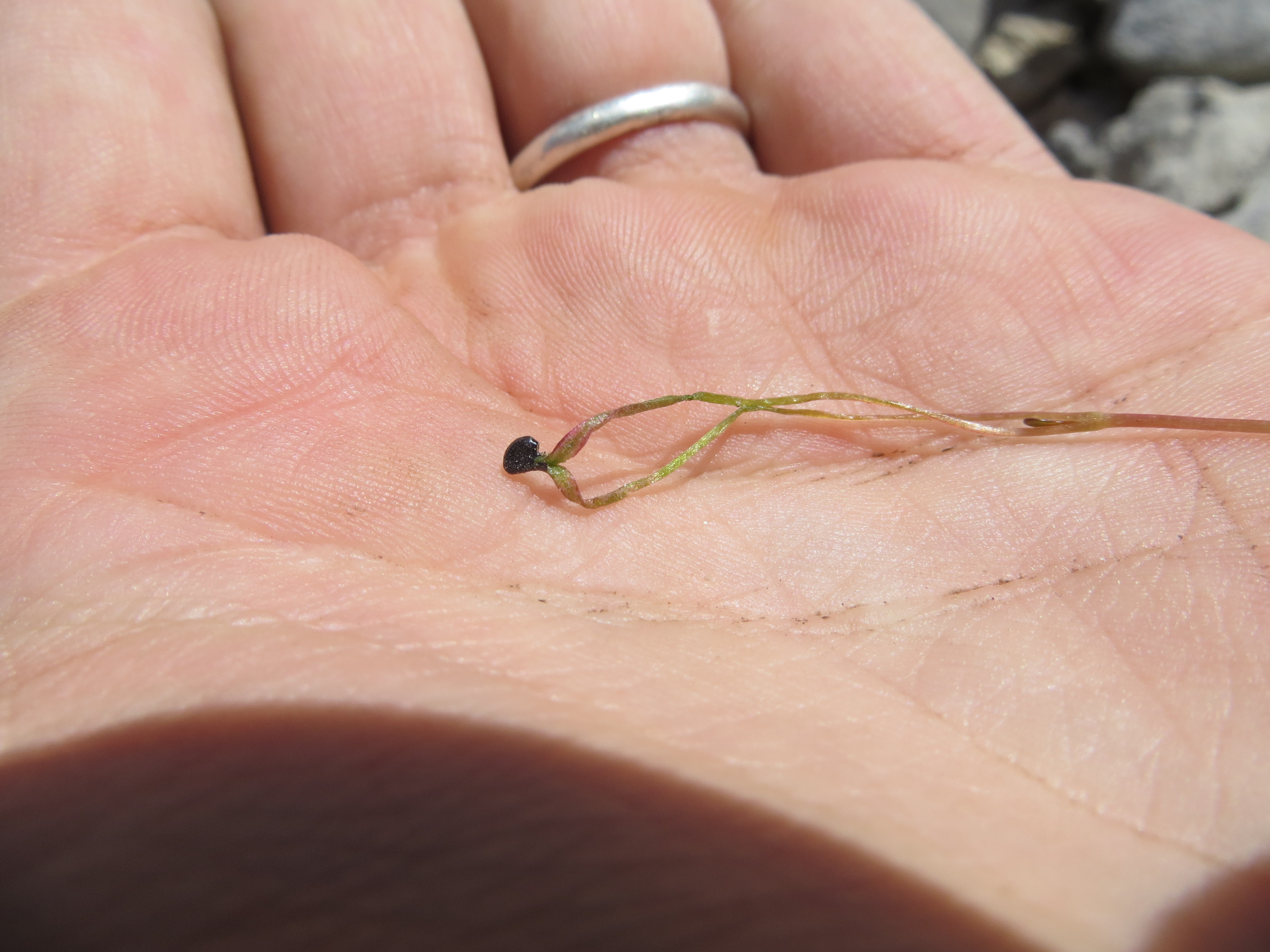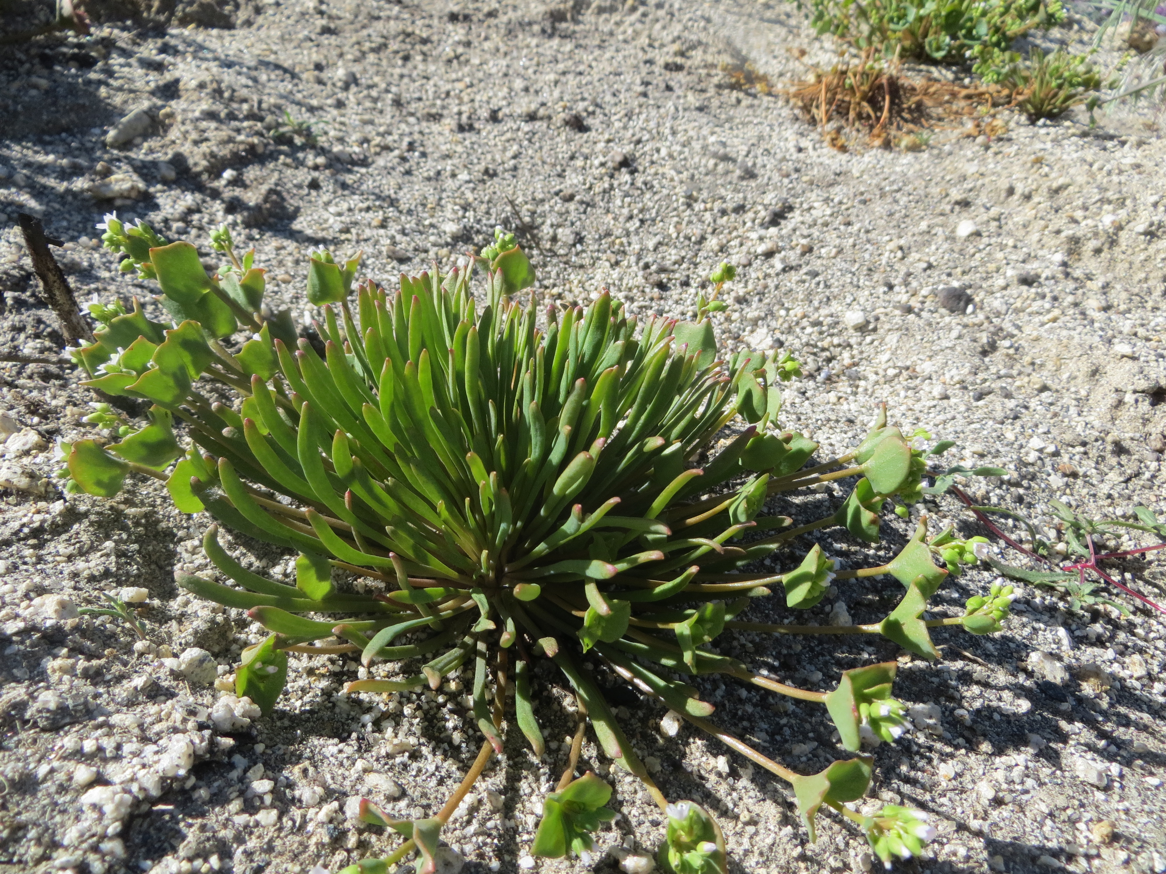 OK, so the leaves are sort of laying flat, and kinda red undeneath, but you’re still not totally convinced you are looking at Claytonia rubra and not some other similar-looking miner’s lettuce. Well, you’re in luck — I’ve noticed that many races of Claytonia rubra tend to have the look of variegated leaves, possibly related to a breaking up of the cuticle during development. If you see something like the plant in the picture(s) above, where there are variegated streaks on the leaves of a Claytonia, it is VERY likely that you are indeed looking at Claytonia rubra.