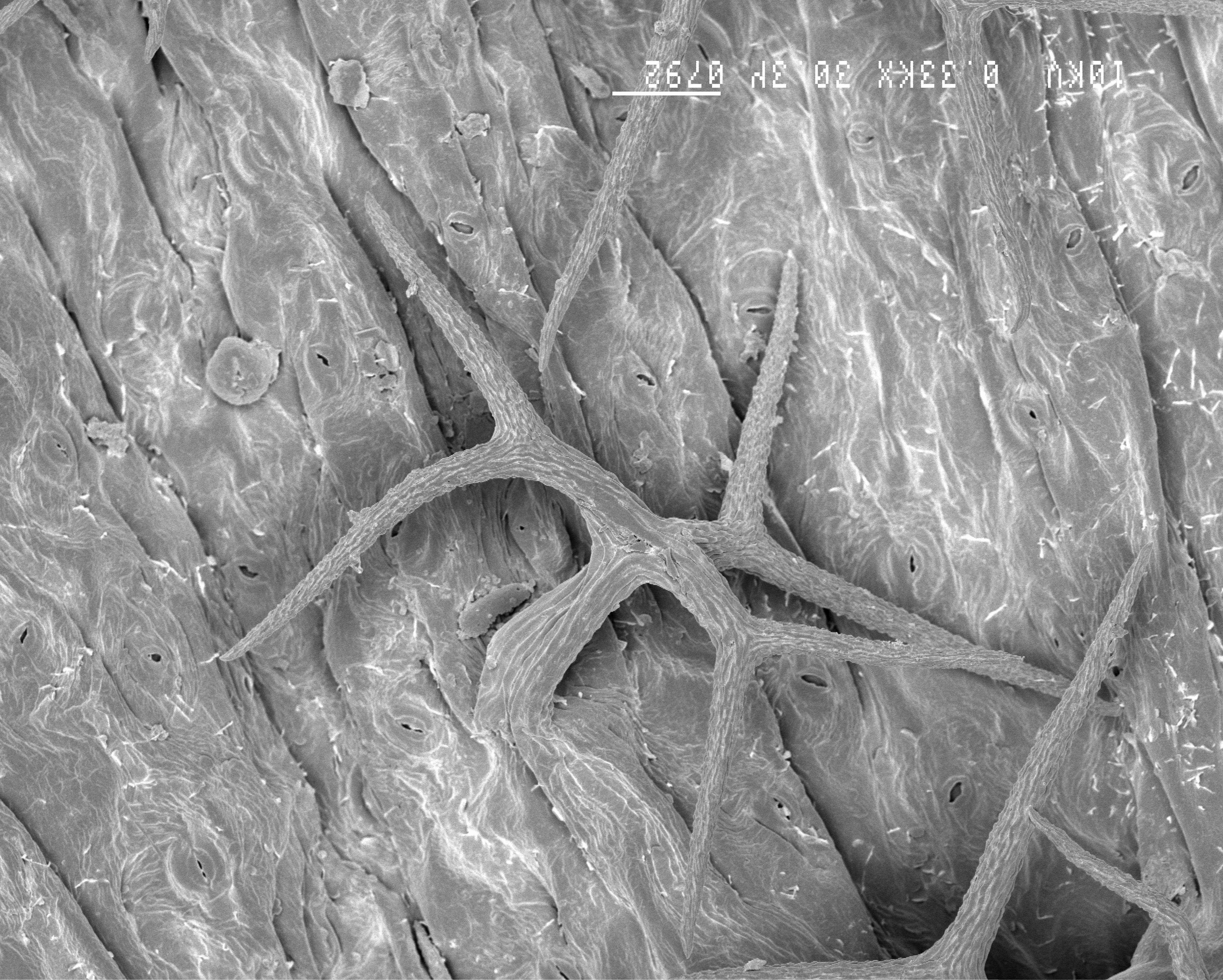 Trichome of Boechera peirsonii, photographed at .33KX using the scanning electron microscope in the Anatomy Lab at RSABG.