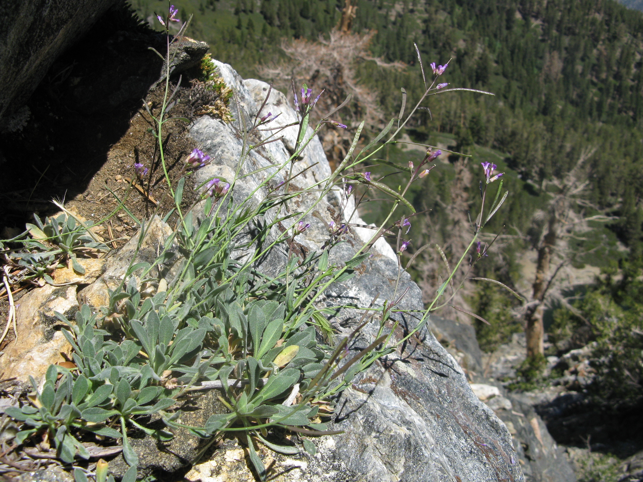 Boechera peirsonii on the scree cliffs above Dollar Lake, 9,300ft. San Bernardino Mountains, southern California.