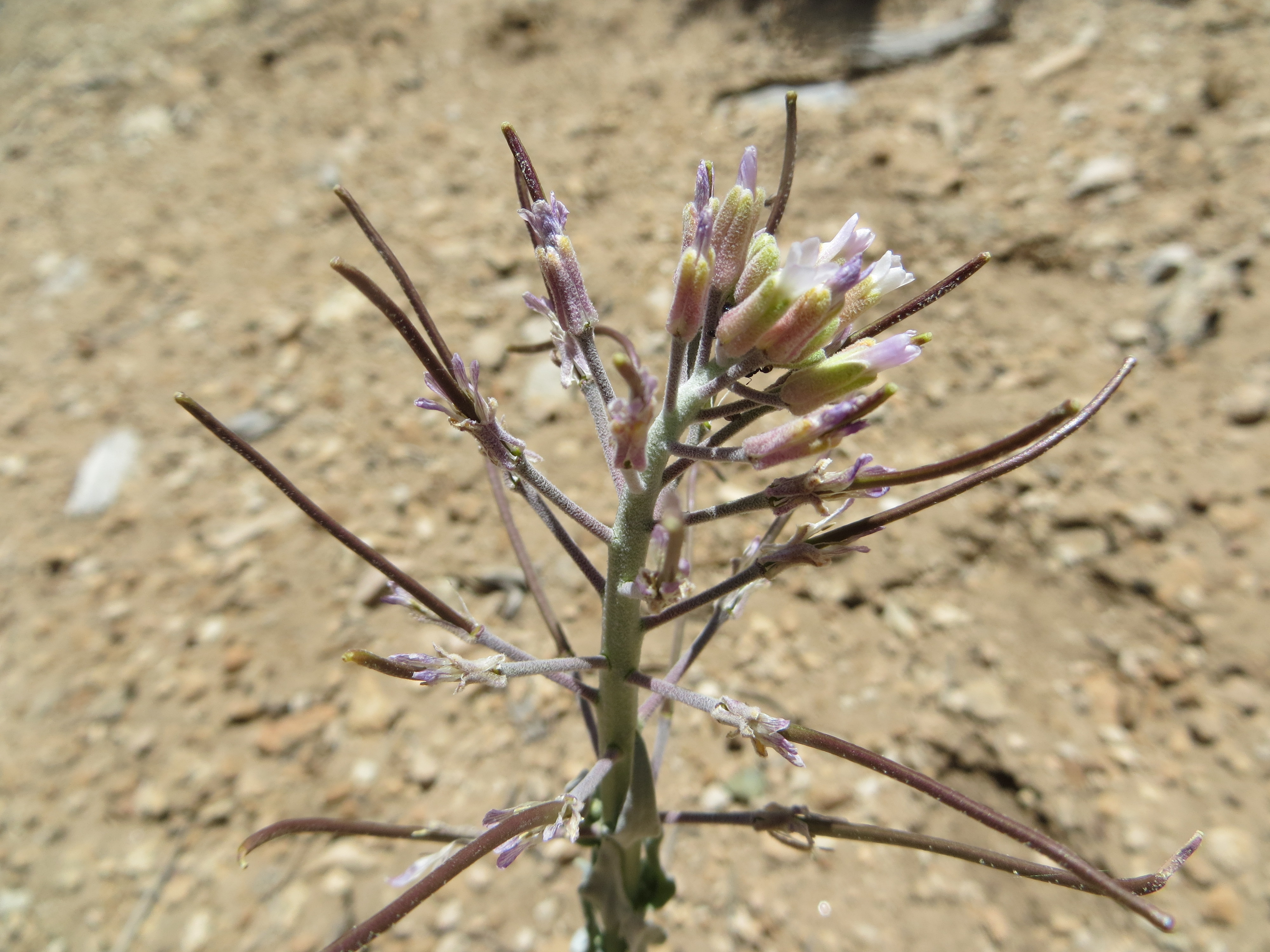 The limestone hybrid, Boechera “grossii”, flowering and fruiting near the head of Furnace Canyon, San Bernardino Mountains.