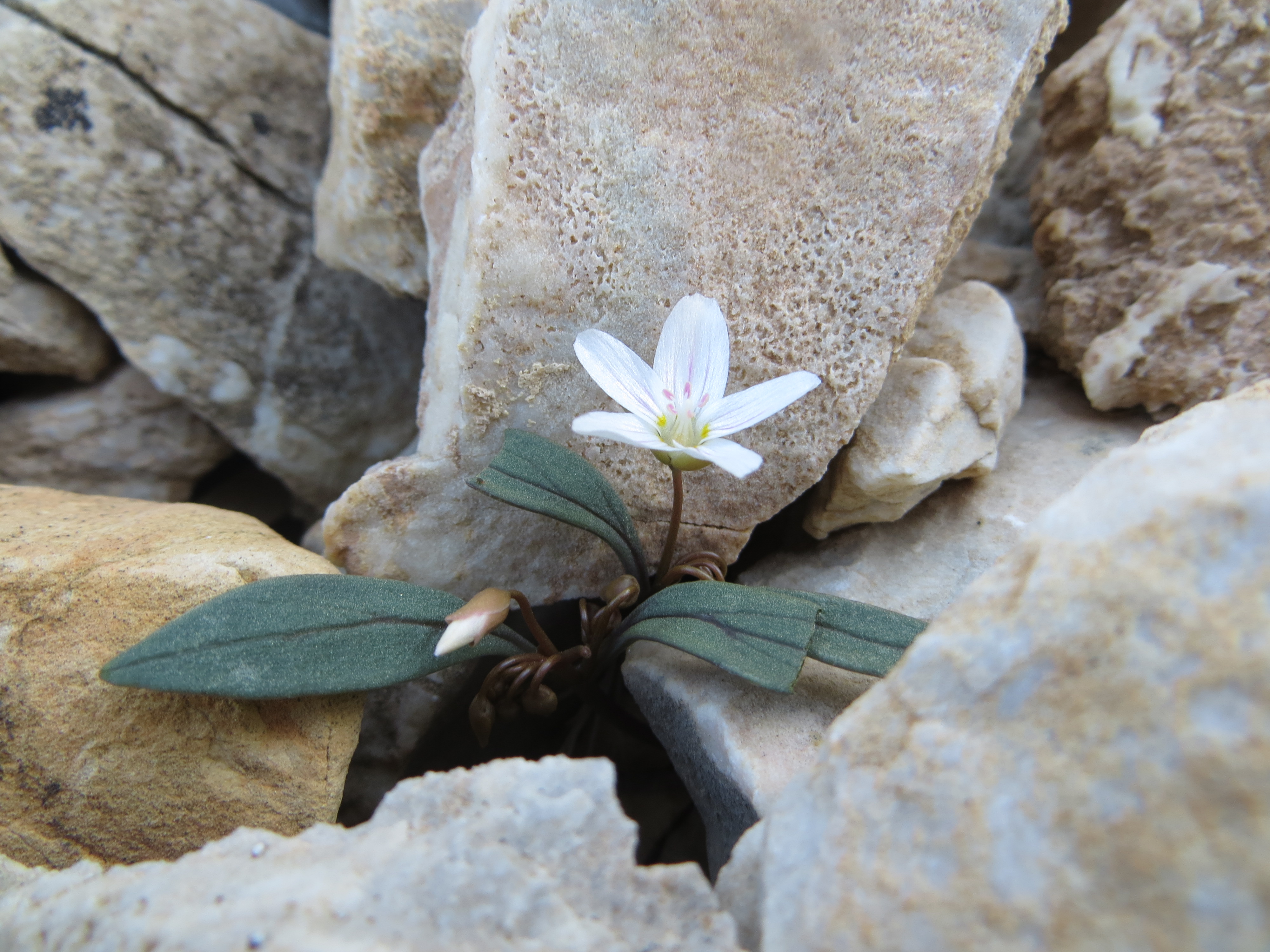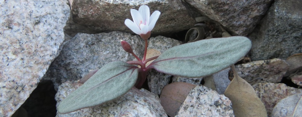 Pictured above is an emerging Claytonia “yorkii” plant, found growingin the southern Sierra Nevada at Cross Mountain (Jawbone Canyon) in Kern County almost two weeks ago.