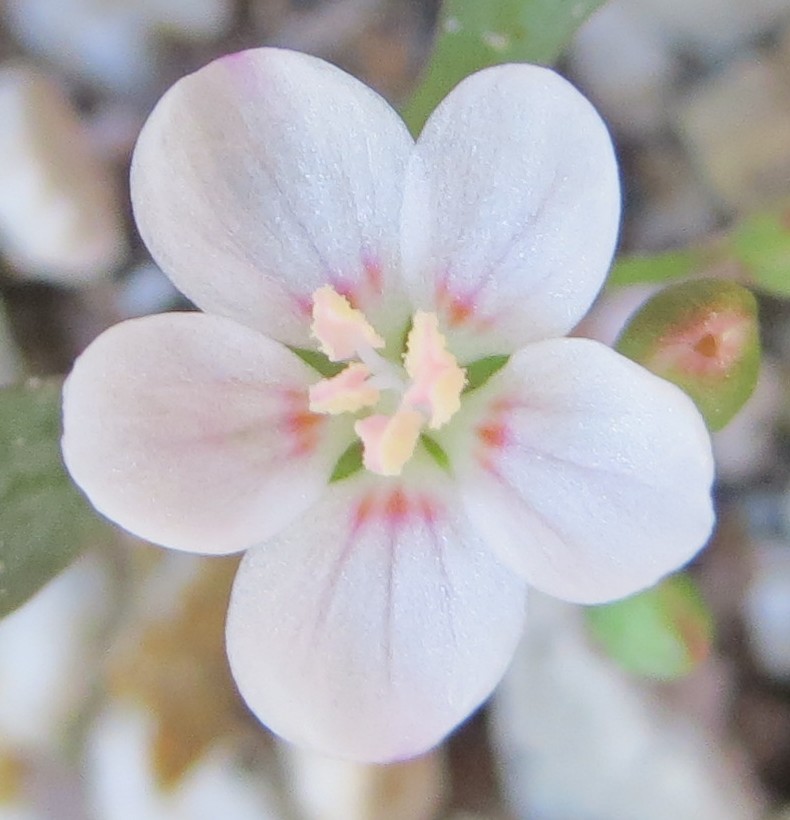 One such other Claytonia worth mentioning is C. lanceolata var. peirsonii from the Panamint Mountains (above), Death Valley National Park — these plants are truly SPECTACULAR! They have similar flowers to those of the plants on Bertha Ridge in the San Bernardino Mountains, but these plants have much more pink in their petal veins, and they seem to have slightly wider petals. Still other members of the C. “peirsonii” complex (= C. lanceolata var. peirsonii) from southern California deserve mention…