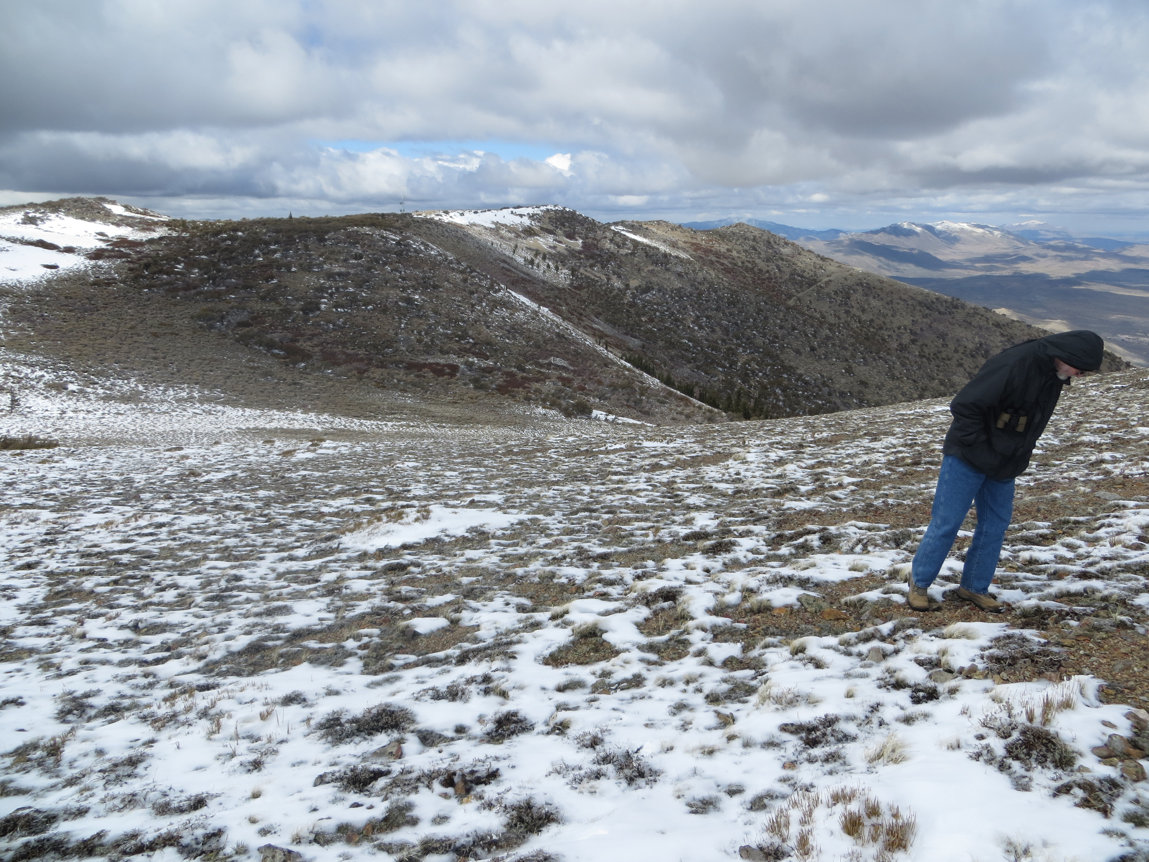 Dr. Jeff Doyle (Cornell University) trying to stay warm while searching for the elusive flowering Claytonia.