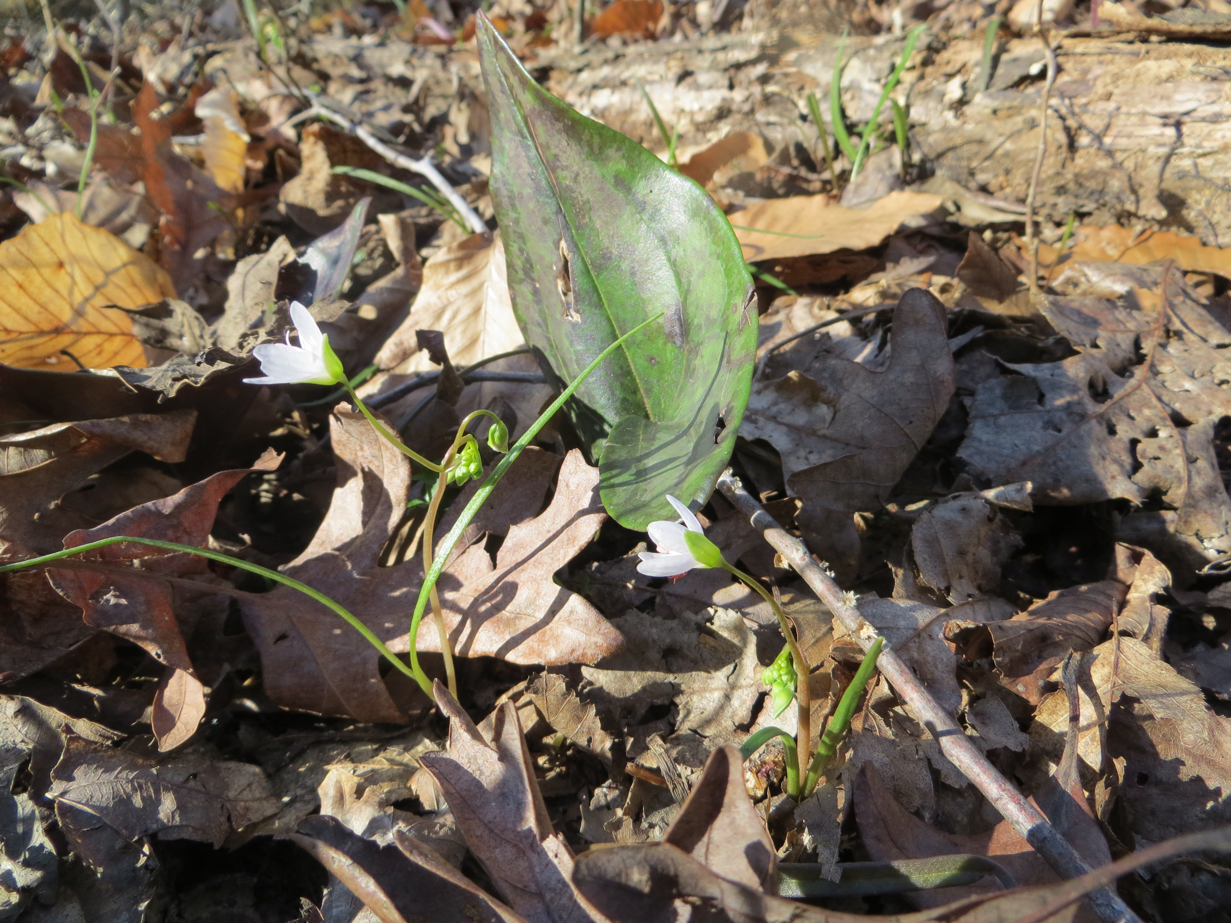 NOPE, it’s not Claytonia time here, at least not really anymore. There were some plants around with buds, but most of the C. lanceolata var. peirsonii here has dispersed its seeds and are beginning to wither back to their underground tubers. We did not find any flowering — I guess the Doyles will have to come back again next year, or meet me somewhere northward in a few more weeks!