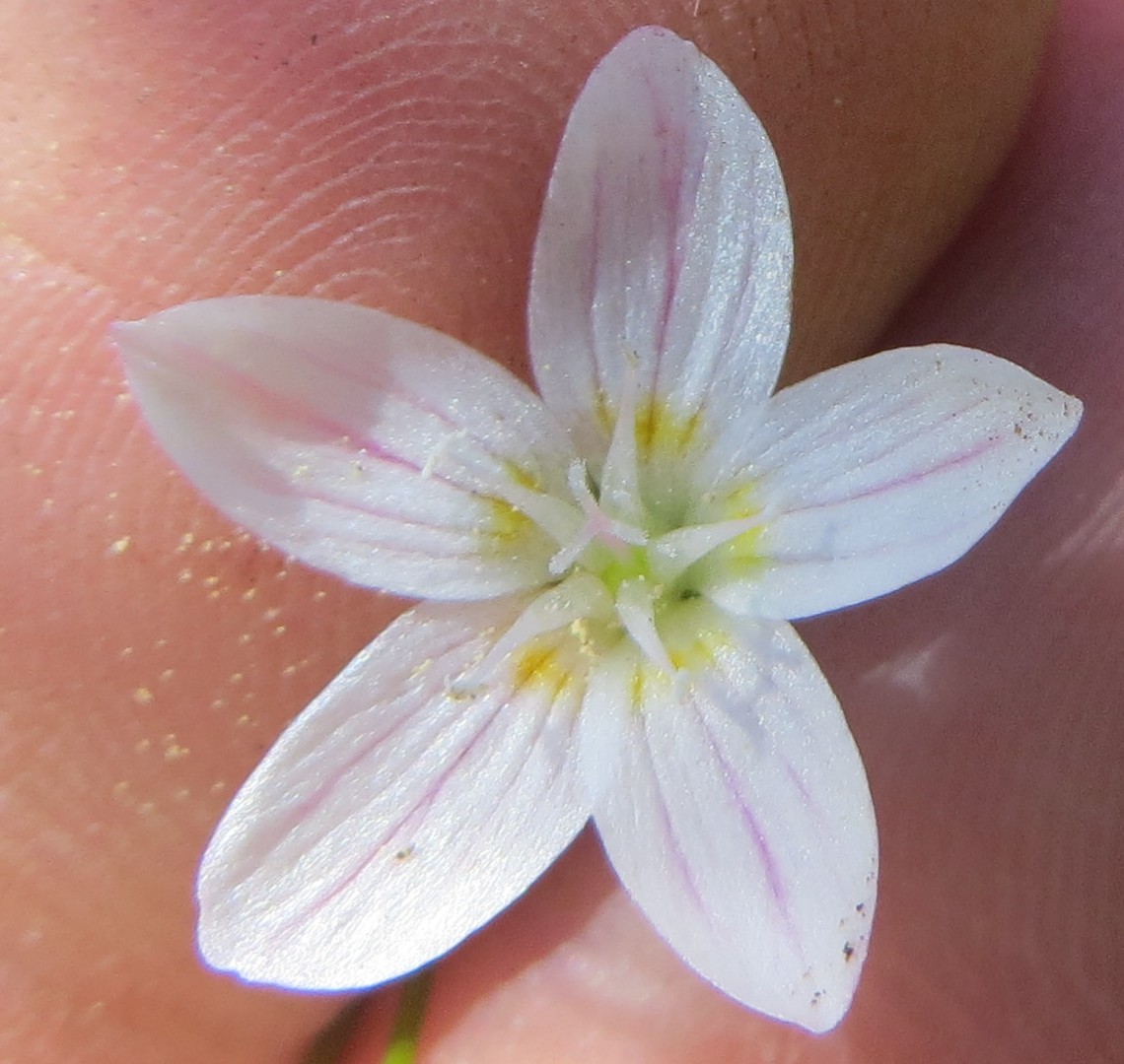 Well… you can help me study something really fascinating about Claytonia, that’s why! Send me your pictures so we can get to the bottom of this — How much variation is typical in terms of petal shape, size, and color for a given population of Claytonia?! My collaborators and I have noticed quite a bit of variation among populations of different species, but what may be even more interesting is the amount of variation in petal morphology within populations of a species. It might bend your brain the next time you kneel down and take a look around at the Claytonia blooming in your area. Better yet, take a picture of 50-100 flowers from directly facing the flowers (trying to center the gynoecium in the flower as best as possible), and then compare them (or send them my way). Crazy, right?