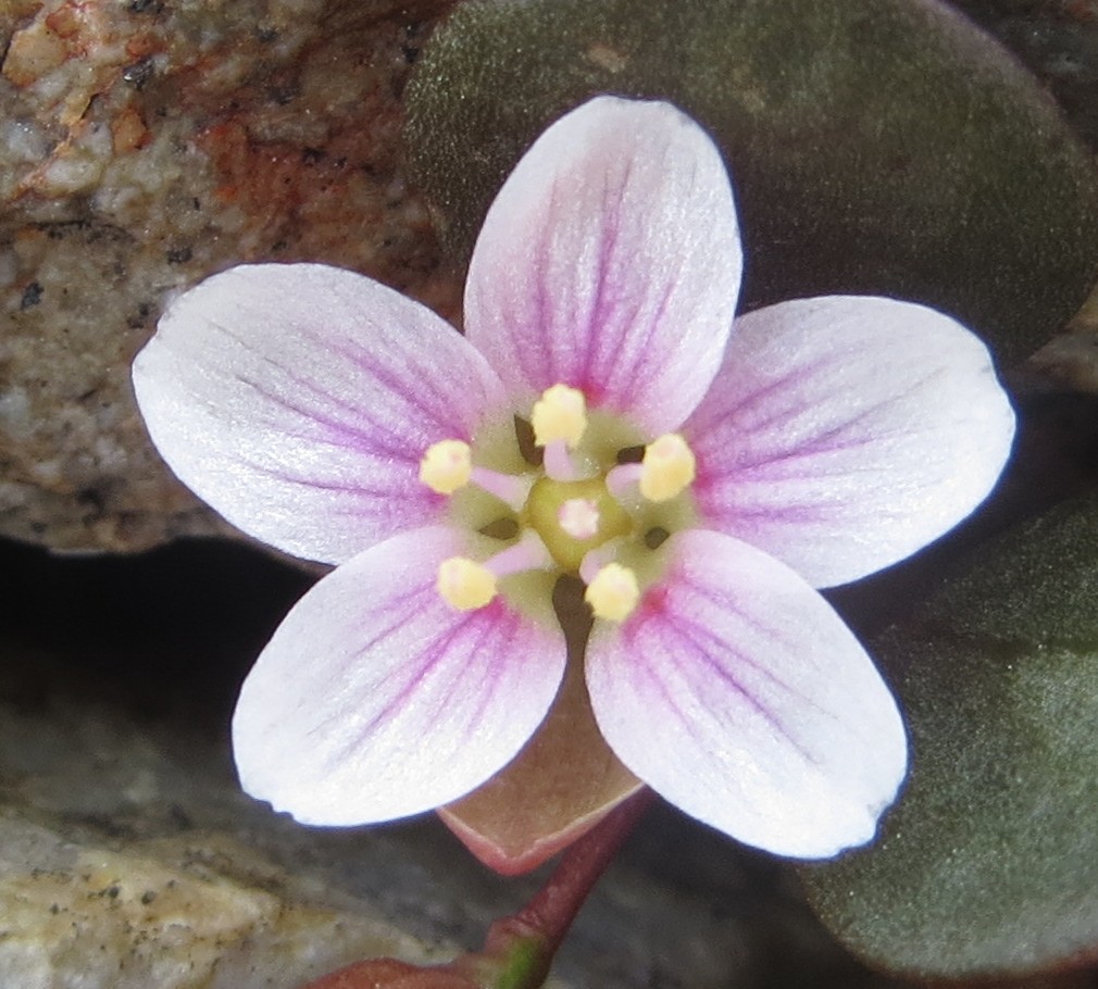 Rounding out members of the Claytonia “peirsonii” complex represented in this contest, C. lanceolata var. peirsonii from the southern Sierra Nevada is pictured above. I thought this cutie would have done better in the last contest — I’ve thrown in some props this time to help boost its score. These Claytonia have continued to stun me year after year with their beautiful floral displays, but there are Claytonia outside of the C. “peirsonii” complex that are certainly contenders in the cutest contest we’ve got going here…
